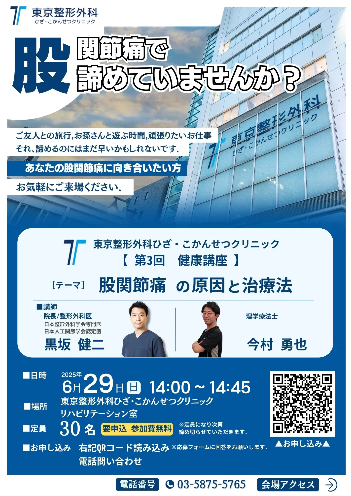 次回は8月31日(日)に“ひざ関節痛の原因と治療法”をテーマに開催予定です。